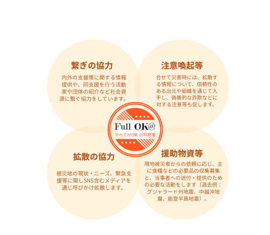 被災地の現状・ニーズ、緊急支援等に関しSNS含むメディアを通じ呼びかけ拡散します。